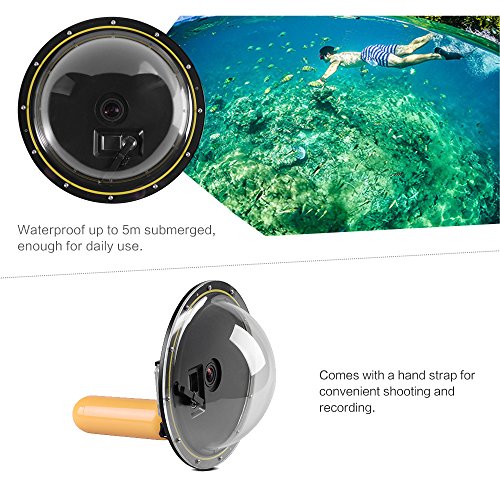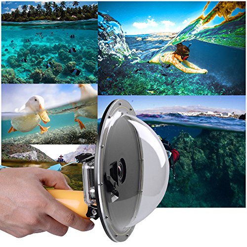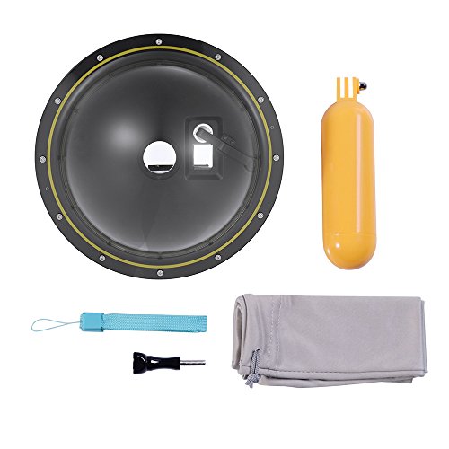 Mit 5M täglich wasserdicht, ist diese halbkreisförmige Dome-Port geeignet für den täglichen Gebrauch wie Schwimmen auf einem Pool und im flachen Wasserbereich, so dass die Möglichkeit der Erfassung faszinierende Bilder sowohl über und unter dem Wasser. Sie können dies bei der Verwendung eines Dome-Ports für Gopro Hero beunruhigt haben: Kann man den Modus oder andere Spezifikationen nicht frei einstellen, da keine Steuerknöpfe am Dome-Port vorhanden sind? Nun, dieser Kuppel-Port könnte Ihnen etwas Komfort bringen.Eigenschaften: Der Dome-Port ist mit einem wasserdichten Gehäuse ausgestattet, das speziell für GoPro 4/3 + / 3 entwickelt wurde. Die Basis ist um 12 kleine Schrauben um eine bessere Abdichtung und lässt die Kuppel für die Reinigung mit diesem abnehmbaren Design vollständig zerlegt werden. Entworfene 3 entsprechende Tasten entsprechen den Tasten „Mode / Power“, „Shutter / Select“ und „Setting / Tag“ auf der Kamera.Technische Daten: Material: Acryl und ABS Wasserdicht: 5M / 16.4ft Einzelteil-Größe: 18.5 * 18.5 * 9cm / 7.28 * 7.28 * 3.54in Einzelteil-Gewicht: 248g / 8.75oz Paket-Größe: 18.5 * 18.5 * 10cm / 7.28 * 7.28 * 3.94in Paket-Gewicht: 483g / 17.04ozVerpackungseinheit: 1 * Dome-Anschluss 1 * Floaty Griff 1 * Schraube 1 * Handgelenk Schlüsselband 1 * SchutztascheHinweis: Kamera und anderes Zubehör sind nicht im Lieferumfang enthalten.