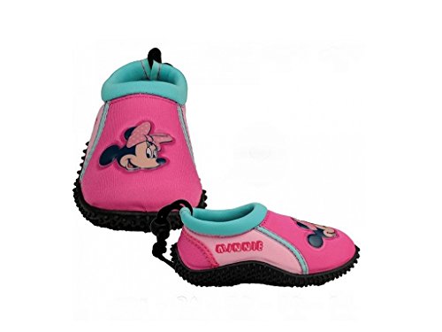 Rutschfester Schuh mit Gummisohle innen sehr weich, wasserfest hinten mit verstellbarem Kordelzug in verschiedenen Grössen lieferbar in Grösse 26,27,28,29,30,31,32 BITTE PER EMAIL ANGEBEN Minnie Maus waschbar keine Maschinenwäsche Mit Aufhängebügel für Strand, im Wasser im Schwimmbad
