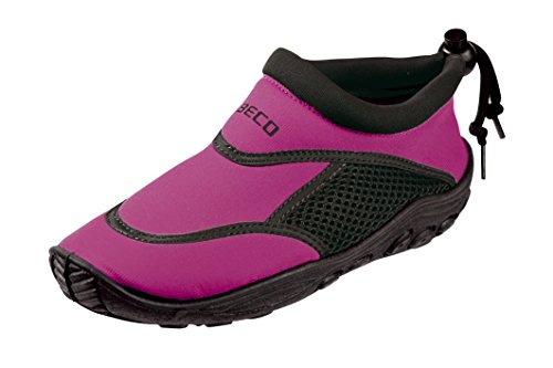 Perfekt zum Surfen, am Strand tollen, durch das Watt waten… Der ideale Schutz vor spitzen Steinen oder anderen Unannehmlichkeiten auf dem Meeresboden. – Bequem und elastisch durch Neopren-Obermaterial – Rutschfeste Profilsohle – Ideal für alle Aktivitäten am Strand – Per Schnellschnürung individuell anpassbar Surf- und Badeschuhe aus Neopren, mit Netzeinsatz und rutschfester Gummisohle.