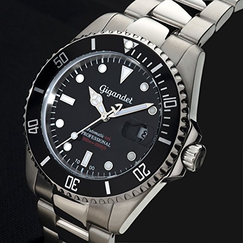 Gigandet Uhren Die Uhren der Marke Gigandet führen die Tradition schweizer Uhrmacherkunst fort. Gegründet 1925 in Solothurn stieg die Firma Gigandet schnell zu einem führenden Hersteller von Automatikuhren und Chronographen auf. Aus dieser langen Tradition heraus fühlt sich Gigandet stets höchsten Qualitätsansprüchen verpflichtet, die sich in jeder einzelnen Uhr wiederspiegeln.Die Herren-Taucheruhr Sea Ground Die Gigandet Taucheruhr Sea Ground setzt neue Maßstäbe in Sachen Qualität und Eleganz. Speziell für alle Taucher wurde die Uhr so konstruiert, dass Sie Drücken bis 30 bar (300 Meter) problemlos standhält. Eine verschraubte Krone sowie ein verschraubter Gehäuseboden sind bei dieser Uhr natürlich eine Selbstverständlichkeit. Für höchste Präzision sorgt das automatische Markenuhrwerk von TMI mit Sekundenstopp.Qualität und Materialien Um höchsten Qualitätsansprüchen gerecht zu werden, verwendet Gigandet ausschließlich hochwertigste Materialien. Dies beginnt mit massivem Edelstahl für Gehäuse, Armband sowie Schließe und endet bei einer verschraubten Krone um die hohe Wasserdichtigkeit zu gewährleisten. Die Detailverliebtheit dieser Uhren spiegelt sich auch in der Verwendung des Markenlogos am Ende des Sekundenzeigers und auf der Krone wieder.Tradition und Innovation Aus der langen Tradition des Hauses Gigandet entstehen auch heute noch Uhren, die ihren Vorbildern in Design und Qualität in nichts nachstehen. Seit jeher war es das größte Interesse von Gigandet seine Kunden zufriedenzustellen. Wer einmal eine Gigandet in der Hand gehalten hat, wird begeistert sein von Qualität und Anmutung dieser Uhren.