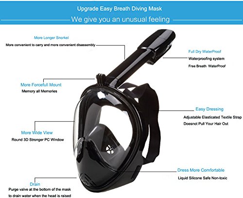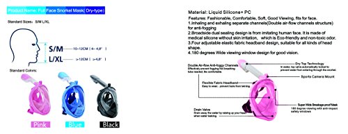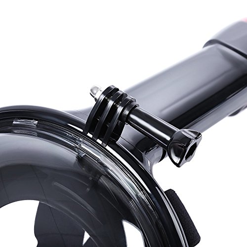 Schnorcheln ist unangenehm für Sie? Hassen Sie es, durch ein Rohr im Mund zu atmen? Diese absolut trockene Schnorchel-Maske ist die beste Wahl für Sie! Sie bietet ein einzigartiges Taucherlebnis mit Panoramablick, der es ihnen ermöglicht, alle atemberaubenden Unterwasser-Szenen zu erfassen. Die innovative Trockentop-Technologie ermöglicht es Ihnen, frei unter Wasser zu atmen. Ein voll abgedecktes Gesicht und ein Sichtfenster aus gehärtetem Glas mit 180-Grad Panoramablick, bieten einen besseren Schutz für Ihr Gesicht und breitere Unterwasseransichten. Es ist die beste Maske für Sie, um Ihre Taucherlebnisse zu genießen! Eigenschaften: – Entleeren Sie das Ventil für das Entwässern der Maske, indem Sie Ihren Kopf anheben. -Die Maske ist ausgestattet mit einer Kamerahalterung, die einfach an die GoPro Kamera angeschlossen werden kann. – High Definition, Anti-Beschlag- und Weitwinkel-Maske. – Justierbarer elastischer Stoffstirnbandriemen, verwendbar für alle Kopfformen. – Geeignet für Erwachsene und Jugendliche. – Ideal zum Tauchen, Schwimmen, Schnorcheln und anderen Unterwasseraktivitäten Bedienung: 1. Auspacken und die Schalle lockern 2. Die Schnalle drücken und das Band ziehen, damit es lose wird 3. Das Band anheben und das Kinn auf die Unterseite der Maske legen 4. Das Band über den Kopf ziehen 5. Maske und Band justieren, damit die Maske dicht am Gesicht anliegt, dann das Band festziehen 6. Beim Ablegen der Maske, auf die Schnalle drücken und am Band ziehen. Verpackungsinhalt: 1x Schnorchel Maske 1x Bedienungsanleitung 1x Aufbewahrungstasche Verpackungsgewicht: 0,555kg