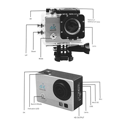 Dieses Set ist ein wirklich tolles Starter Kit für jedermann interessant in einer Action Kamera. Wasserdicht bis 30 Meter. Eingebautes Mikrofon und Lautsprecher,Unterstützungs4X digitales Summen, Schleifenaufzeichnung, Burstfoto, ununterbrochenes Vergehen, Zeitraffer u. Mehrsprachig Professionelle Videoqualität Ultra HD 4K, diese Kamera schießen 4K Video für Sie, haben Sie auch andere Optionen, 1080,720etc und Sie können wählen, die Sie wollen. Produktspezifikationen * WIFI: EIN / AUS * Chipsatz: AllWinner V3 * Belichtung: -3 — + 3 * Zeit-Wasserzeichen :: EIN / AUS * Bild-Sensor: Sony IMX179 * Drama Schuß: 3P / S, 5P / S, 10P / S, AUS * Schleifenaufnahme: OFF / 2min / 3 min / 5 min Packungsinhalt : 1 x wasserdichtes Gehäuse 1 x Fahrradhalterung 1 x Untersatz 1 1 x Untersatz 2 1 x Rückenclip 1 x fester Unterbau 1 x Schaltträger 1 1 x Schalterunterstützung 2 1 x Schalterunterstützung 3 1 x Kommutator 1 x Helm-Sockel 1 x Verband 1 x Schale 1 x Bändchen 1 x 3m Matte 1 x Drahtseil 1 x Datenkabel 1 x Adapter 1 x Benutzerhandbuch 1 x Reinigungstuch Tipps * Mikro Sd Karte ist nicht im Paket eingeschlossen. * Stellen Sie sicher, erhalten Sie eine Klasse 6 oder höher Micro SD hc Karte mit dem Speicher mindestens 8G