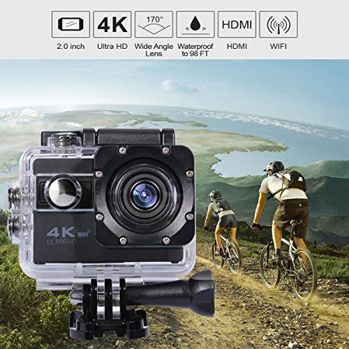 Achtung: eigentlich passen diese Kamera in 128GB Speicherkarte, leider gibt es viele falsche Speicherkarten auf Market, welche passen nicht, bitte benutzen Sie richtige 64GB KarteBeschreibung:20MP Bildauflösung Nehmen Sie atemberaubende Bilder bis zu 20MP Auflösung, 16M 4608 * 3456, 12M 4032 * 3024, 10M 3648 * 2736,8M 3264 * 2448, 5M 2592 * 1944, 3M 2048 * 1536, VGA 640 * 480 wählbar.Unterwasseraufnahmen bis zu 30 MeterMit wasserdichtem Gehäuse kann Sport Kamera unter Wasser 30 Meter arbeiten, ideal zum Schwimmen, Treiben, Surfen, Tauchen Rekord.HINWEIS:1. Stellen Sie sicher, dass Sie Klasse 10 oder über Micro-SD-Karte mit mindestens 8G und höchstens 64G erhalten;2. Wenn Sie 4K-Video abspielen möchten, bitte bis zum 4K-Display anschließen.3. 4K ist nur für Apple Macbook. Wenn Sie auf Quicktime-Player abspielen, zeigt es 3840 * 2160 @ 24fps. 4. Wenn Sie Kamera mit dem Telefon verbinden, ist Internetverbindung des Telefons nicht verfügbar.5. Wenn Sie Aktion erstmals benutzen, muss es für lange Lebensdauer voll aufgeladen werden.Spezifikation:Video Fileformat: MP4Video-Komprimierung Encoding: H.264Lagerung: Micro SDHC Klasse 10 oder höher. Unterstützt Lagerung 32G 64G(Micro SD-Karte ist nicht im Lieferumfang enthalten)Capture-Modi: Single/2s Timer/5s Timer/10s TimerFrequenz: 50Hz/60Hz USB: Micro USB 2.0Ladezeit: ca. 3.5 StundenLängste Aufnahmezeit: Max 70 min WIFI: JAAbmessungen: 5,9 * 4,1 * 3,1 cm (2.4 * 1.3 * 1.6)Lieferumfang:>1 x ODRVM Action Kamera>1 x Transportkoffer (Nylon,Stossfest)>1 x Unterwassergehäuse>1 x Gehäuse Klammer>1 x Reinigungstuch>1 x Ribbon>1 x Drahtseil>1 x Multifunktionsklammer>1 x Fahrrad Montage Kit>2 x verschiedene Helm Montage Kit>1 x USB-Kabel>2 x 1050mAh Akku>1 x Benutzerhandbuch>1 x Handband