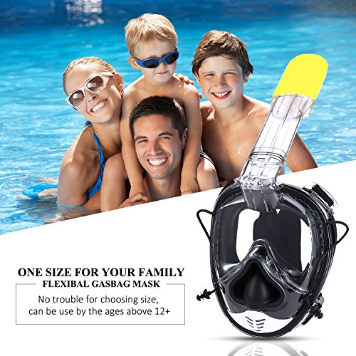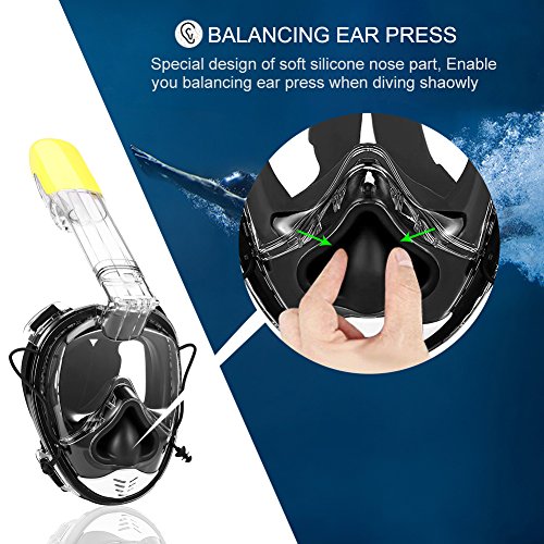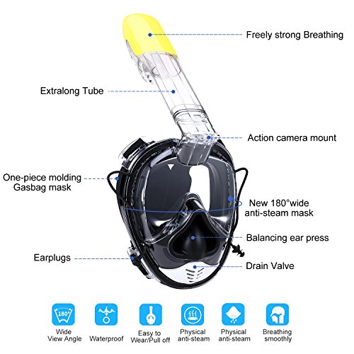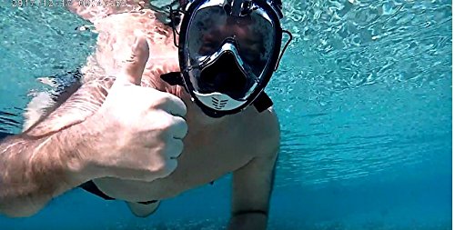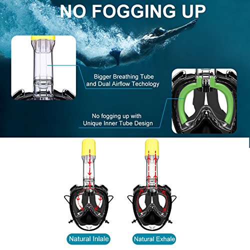 Größeres Atemrohr mit Dual-Luftstrom-Technologie, damit kann man im Wasser sowie an Land problemlos schnorcheln.