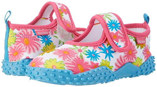 rutschhemmende TPR-Sohleschützt sicher vor heißem Sand und spitzen SteinenApplikation: hübscher Blumen-AlloverdruckKlettverschlussschnell trocknendes MaterialEinstiegshilfe für leichtes An- und Ausziehenauch als Hausschuh geeignetUV-Schutz 50+ nach EN 13758-1 (Hohenstein Institute Prüf-Nr. 15.1.10.0286)Ob am Strand oder im Schwimmbad, so ist Ihr Kind bestens für die Badesaison gerüstet. Badeschuh mit rutschhemmender TPR Sohle und UV Schutz. Der praktische Klettverschluss ermöglicht ein schnelles an- und ausziehen und gibt zusätzlich einen guten Halt im Schuh.Material:Obermaterial und Innenfutter Textil, Sohle Synthetik