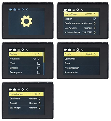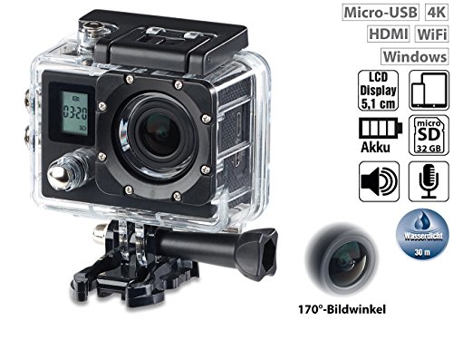 Beste Aufnahme-Kontrolle bis 30 m unter Wasser: dank 2 LCD-Displays Gönnen Sie sich 4K-Qualität zum kleinen Preis: Drehen Sie ultrascharfe Videos oder nehmen Sie Fotos mit bis zu 16 Megapixeln auf. So halten Sie Ihre Abenteuer in ultimativer Bildqualität fest! Machen Sie verborgene Details sichtbar: dank Zeitlupen-Funktion mit bis zu 120 Bildern pro Sekunde. Sie haben alles im Blick: Auf dem großen Display auf der Rückseite nehmen Sie bequem alle Einstellungen vor. Volle Aufnahmekontrolle haben Sie dank einem Front-Display. Ihr Mobilgerät ist der Regieraum: dank WLAN-Übertragung und Live-Bild auf Smartphone & Tablet-PC. So sehen Sie nicht nur, was Sie aufnehmen- Ihnen entgeht auch garantiert nichts mehr! Bei jedem Ihrer Abenteuer dabei: dank umfangreichem Montagezubehör für Lenker, Helm, Gürtel u.v.m. Mit dem staub- und wasserdichten Schutzgehäuse gehen Sie sogar auf Tauchgang: in bis zu 30 Metern Tiefe! Das hochwertige Objektiv mit 6-fach vergüteten Glas-Linsen sorgt unter allen Bedingungen für exzellente Bildqualität. So sind Sie mit dem Komplett-Paket bestens für Ihren Einstieg ins Action-Filmen gerüstet!Zubehör- & Mitbestell-Empfehlungen: Zubehör Set für Go Pro Hero: B01BJ7NPAY, B01BJ7NQ58, Action Cam ZUBEHÖR: B01BYNDH92, Zubehör Sets Für Gopro Hero: B01BJ7NQJY, B01BJ7NQZSDer Statt-Preis von EUR 189,90 entspricht dem ehem. empf. VK des Lieferanten.