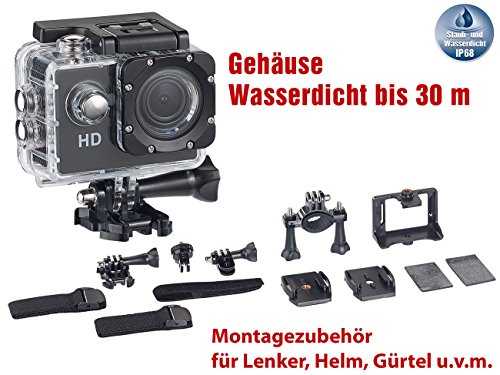 Alle Ihre Abenteuer in HD-Videos und Bildern mit bis zu 12 Megapixeln AUSZEICHNUNGEN / BEWERTUNGEN / PRESSESTIMMEN:Für diesen populären Artikel liegen uns drei Pressestimmen vor, die Sie in den Produktbildern finden. Halten Sie Ihre Abenteuer in Bild und Ton fest: Drehen Sie scharfe HD-Videos von Ihrer Motorrad-Tour, Achterbahn-Fahrt & Co. Oder nehmen Sie Fotos mit bis zu 12 Megapixeln auf. Flexibler microSD-Speicher: Nehmen Sie bis zu 3,5 Stunden Video auf einer 32-GB-Speicherkarte auf. Ist der Speicher voll, wechseln Sie einfach die Karte und filmen weiter. Überall dabei dank umfangreichem Montagezubehör für Lenker, Helm, Gürtel u.v.m. Mit dem staub- und wasserdichten Schutzgehäuse gehen Sie sogar auf Tauchgang: bis zu 30 Meter tief! Zubehör- & Mitbestell-Empfehlungen: Zubehör Set für Go Pro Hero: PX3931-944, Zubehör Sets Für Gopro Hero: PX3938-944, PX3935-944, Action Cam ZUBEHÖR: NX4225-944Der Statt-Preis von EUR 69,90 entspricht dem ehem. empf. VK des Lieferanten
