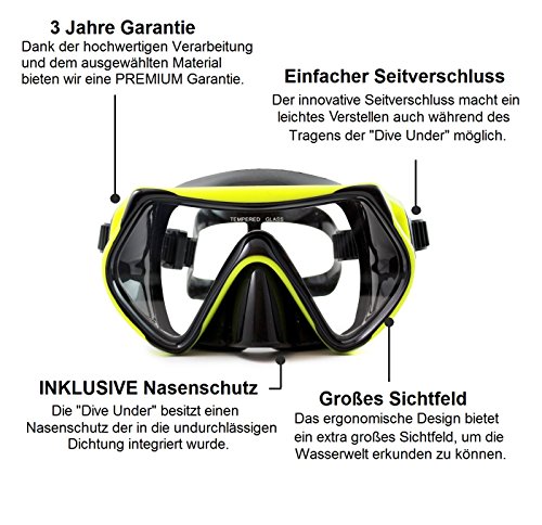 Sport ist anstrengend, ermüdend und zu monoton für Sie? Das muss nicht sein, denn Tauchen ist wohl einer der schönsten Sportarten überhaupt! Mit einigen Arm- und Beinschlägen und unserer Premium Taucherbrille „Dive Under“ taucht man wortwörtlich in eine ganz neue Welt ein und entdeckt nicht nur seinen Spaß am Sport wieder, sondern auch ganz neue Lebensformen. In unserem Set erhalten Sie: 1 PREMIUM Tauchbrille „Dive Under“ Exklusive 3 Jahres Garantie Mit der Premium Tauchbrille können die verschiedenen Unterwasserwelten auf eigene Faust entdecken werden! Dabei vereint die „Dive Under“ modernes Design als auch eine hohe Funktionalität in Form von beschlagfreien Gläsern, komfortablen Gummibändern und extra großen Sichtfeld. Ihre Vorteile: Modernes Design Großes Sichtfeld mit Rundumsicht Klare Sicht dank hochwertiger Gläser Wasserundurchlässige Abdichtung Rechtliche Hinweise: Garantiebestimmungen und weitere Informationen zur Sportastisch Premium 3 Jahre Produktgarantie finden Sie unter garantie.sportastisch.com.