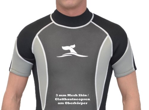 Der qualitativ hochwertige Neopren Shorty für Herren mit halblangem Arm und Bein ist für jeden Wassersport wie Wasserski, Surfen, Kanu/Rafting, Schnorcheln, Wellenreiten und natürlich auch Schwimmen geeignet. Der Oberkörper-Bereich ist mit Mash Skin / Glatthautneopren versehen, das schützt zusätzlich vor Wind und trocknet besonders schnell. Dieser Shorty aus ca. 3 mm Jersey-Neopren ist ein optimaler Kälte- und Windschutz, aber auch wenn es für den Aufenthalt am Strand doch einfach noch zu kühl ist. Die Pflegeanleitung ist im Etikett im Shorty angegeben, die Fotos zeigen den Shorty in Größe S. Ausstattung · komplett in 3,0 mm Jersey-Neopren · optimale Passform auch für längeres Tragen · rückwärtiger Reißverschluss mit 6 cm breitem Neoprenstreifen unterlegt · Original YKK ® Marken-Reißverschluss mit Zugband zum bequemen An- und Ausziehen · mit 3 mm Mash Skin / Glatthautneopren im Oberkörper-Bereich · aktuelle attraktive Farbgebung (gemäß Fotos) · verstärkte doppelte Flach-Nähte erhöhen die Strapazierfähigkeit · weicher, elastischer Kragen mit regulierbarem Klettverschluss Größenangaben · Größe M für Körpergrößen ca. 171 – 178 cm ( Konfektionsgröße 46 – 48) · Gesamtlänge 95 cm · Beinlänge ab Schritt 18 cm · Armlänge bis Kragenansatz 33 cm · Gewicht ca. 740 gr Plegeanleitung laut Etikett: Material 90 % Neopren und 10% Nylon – Handwäsche bei 30°C mit Feinwaschmittel, im Schatten trocknen, nicht bleichen, nicht bügeln, nicht chemisch reinigen und nicht in den Trockner geben