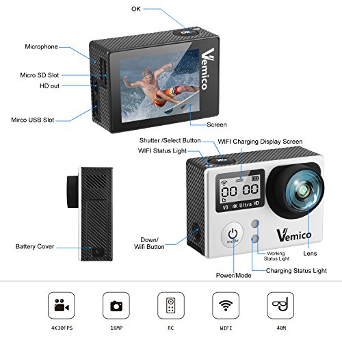 Die vemico 4 K Action Kamera ist ihre beste Wahl. Perfekt für sportliche Aktivitäten im Freien, es ist auch ein tolles Geschenk für Ihre Freunde, Familie und sich selbst.
