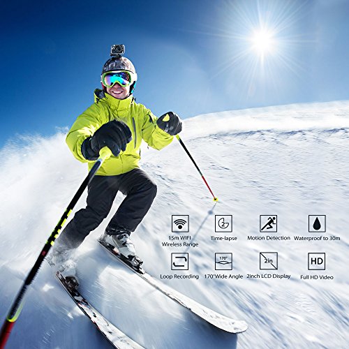 Beschreibung:HD-Videoaufzeichnung Mit sechs Lagen HD Glasobjektiv die wasserdichte Kamera schießt 1080P@30fps, 720P@30fps, 720P@60fps. 170°Weitwinkel-Fisch bietet Augenlinse Ihnen tolle Perspektiven, um fantastische Bilder zu machen.Wiedergabe Videos Und BilderEs unterstützt, dass um Videos zu spielen und Bilder von der Kamera (TV oder Computer wie Sie mag) zu sehen. Schnellen vor- oder Rücklauf Video zur bequemen Ansicht.WIFI-FunktionLaden Sie die kostenlose APP (Final Cam), die mit Android und IOS-System kompatibel ist, können Sie die volle Kontrolle über die Kamera nehmen, mit Ihrem Telefon / Tabellen über WiFi-Funktion. Die WLAN-Taste an der Seite macht den Vorgang leicht.Lange Teig LebenMit 1050 mAh Lithium-Batterie kann die Sport-Kamera 90 Minuten video-Aufnahme-Zeit arbeiten.Spezifikation:Display: 2.0LTPSObjektiv: 170 Grad Weitwinkel Fischaugen-ObjektivVideo-Auflösung: 1080p@30fps; 720P@30fps; 720P@60fps;Videoformat: MOVKomprimieren Format: H.264Bildauflösung: 12M, 10M, 8M, 5M, 3M, 2M; 1,3 M, VGALagerung: Micro SDHC; Klasse 6 oder höher; (Micro SD-Karte ist nicht enthalten)Aufnahmemodi: Einzelschuss / Zeitraffer (2 Sekunden / 5 Sekunden / 10 Sekunden)Frequenz: 50Hz/60HzUSB-Schnittstelle: USB 2.0 Micro, Micro-HDMIBatterie-Kapazität: 1050mAhHinweis:1. Stellen Sie sicher, dass Sie eine Klasse 6 oder höher Micro SD-Karte mit der Speicherung zu erhalten mindestens 8 G und höchstens 32 G;2. Wenn Sie die Kamera mit dem Telefon zu verbinden, ist Internet-Verbindung des Telefons nicht verfügbar.Lieferinhalt:1*VTin Kamera1*Switch Support 11*Switch Support 21*Switch Support 31*Fixed Base1*Fahrradständer1*Adapter, Basis1*Datendraht1*Drahtseil, 1*Ribbon1*Bandage1*Zurück Clip1*wasserdichter Fall1*3M Klebeband1*Clip1*Berg2*Batterien1*Wischer1*Benutzerhandbuch