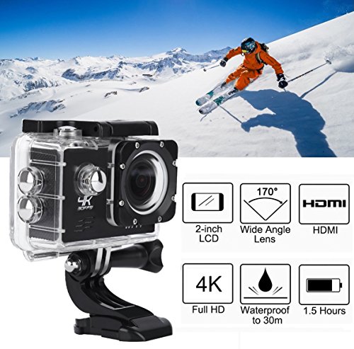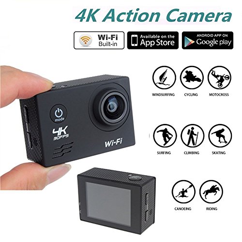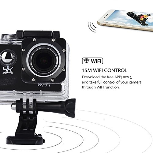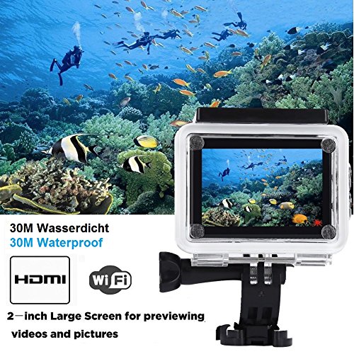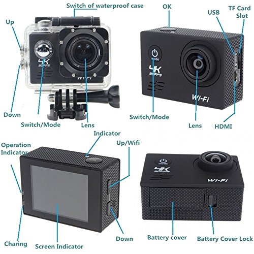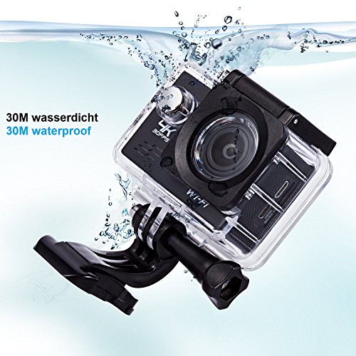 Action Cam 4K WiFi Spezifikationen: Action Cam Eingebautes WiFi-Funktion,Mit Einem wasserdichten Gehäuse, so dass Sie 30 Meter unter Wasser Szene zu filmen. Anzeige: 2 '' LCD-Bildschirm Reifen: 170-Grad-Grad A + hochauflösende Weitwinkelobjektiv WIFI: Eingebautes WiFi-Funktion Sprache: Deutsch / Englisch / Französisch / Spanisch / Italienisch / Portugiesisch / Traditionelles Chinesisch Videoauflösung: 4K 30FPS 30FPS 2k / 1080P (1920 x 1080) 60 FPS / 720P (1280 x 720) 120FPS Video-Format: MOV Videokompression Formate: H.264 Bildauflösung: 16M / 14M / 12M / 8M / 5M Speicherkarte: MicroSD bis zu 32 GB (nicht im Lieferumfang enthalten) Kamera-Modus: Einzelner Schuß / Selbstauslöser / (2 Sekunden / 5 Sekunden / 10 Sekunden) / Continuous Die Frequenz der Lichtquelle: 50Hz / 60Hz Akku-Kapazität: 900mAh Aufnahmezeit: 1080P / 90 Minuten Ladezeit: ca. 3 Stunden Paket beinhaltet: 1 X 4K Sport Action Kamera (Schwarz) 1X Batterie 1 x Unterwassergehäuse 1 X Fahrradständer 1 X Base 1 1 X Base 2 1 X Clip 1 X Fixed Base 1 X Switch Support 1 1 X Switch Support 2 1 X Switch Support 3 1 X Adapter 1 X Helmet Base 1 X Bandage 1 X Ribbon 1 X 3M Adhesive Tape 1 X Wire Rope 1 X Data Wire 1 x Ladegerät 1 x Englische Handbuch 1 X Wiper