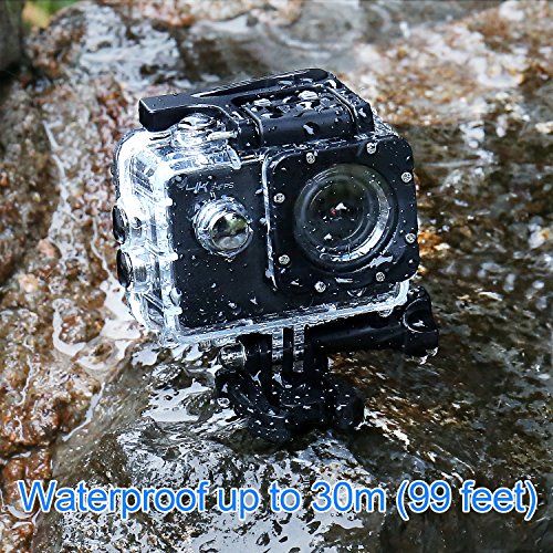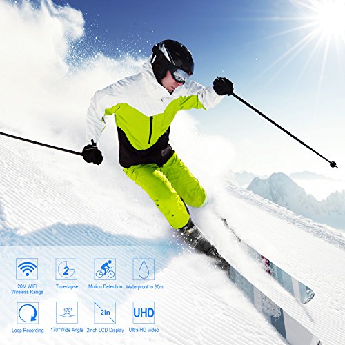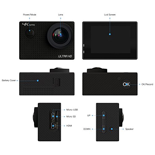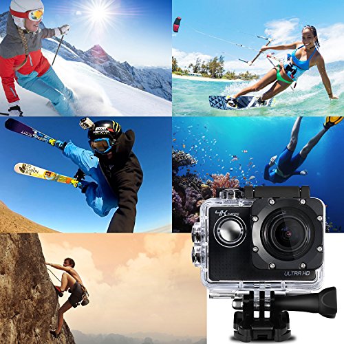Produkt Spezifikationen: >: 170 Grad Ultra-Weitwinkel HD + 6G Objektiv > Der Bildschirm: 2,0 Zoll LCD-Bildschirm > Video-Auflösung: 4 K 24 FPS/2,7 K 30FPS / 1080P 60 FPS/1080p 30 FPS / 720P 120 FPS/ 720 P 60FPS / 720P, 30 FPS / WVGA 30FPS / 240FPS VGA / QVGA 30FPS > Loop-Rekord: Off, 3min, 5min, 10min > Video-Format: MP4 > Video-Kompression: H. 264 > Fotoauflösung: 12 M / 10M / 8M / 5M / 3M / VGA > Fotomodus: Single Aufnahme, Burst Aufnahme, Zeitraffer (Off, 0,1 sec, 0,2 s, 0,5 sec, 1 Sek., 5 Sek.), Bewegungserkennung > Schnittstelle: USB 2.0 / HDMI > Leistungsaufnahme: 5V / 1A >Batterie-Kapazität: 1050mAh >Batterie-Ladezeit: ca. 3 Stunden > Aufnahmezeit: ca. 90 Minuten bei 4K > Abmessungen der Kamera: 56,8 x 38,3 x 27,0 mm > Sprachen des Betriebssystems: Englisch, Französisch, Spanisch, Deutsch, Italienisch, Russisch, Japanisch, Koreanisch Wasserdicht bis zu 30 m Tiefe: Ein robustes, wasserdichtes Gehäuse für Tauchen bis zu 30m unter Wasser. Es ist perfekt für die Aufnahme von all Ihren Abenteuern, lustige Bilder und spannende Videosaufzunehmen, und es gehtleichtkaputt. Lieferumfang: > 1 X YIPIN Ultra HD 4 K Sport Action-Kamera > 1 x wasserdichtesUnterwassergehäuse für dieKamera > 1 xwasserdichte Halterung für das Unterwassergehäuse > 1 x multifunktionale Klammer > 1 X Fahrrad Montagesatz > 1 X Helm Montagesatz > 1 USB-Kabel > 2 x 1050mAh Lithium Batterien > 1 x Bedienungsanleitung Noten: > Webcam-Funktion: Schließen Sie die Kamera über USB-Kabel an den Computer an. > Unterstützt bis zu 64GB Micro SD Card, Micro-SD Karte der Klasse 10 oder höher wird empfohlen. Garantie: > 12 Monate Garantie und einen freundlichen Service, der Sie diesen Artikel ohne Sorgen kaufen lässt.